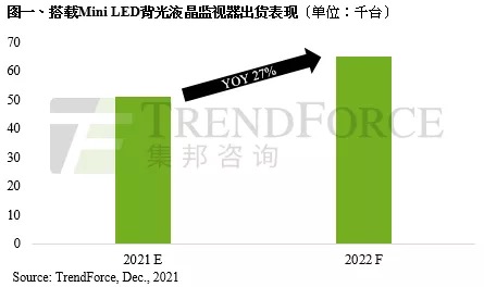 展望2022年,在QD OLED 液晶监视器及OLED 液晶监视器将参加抢食高端液晶监视器市占的局势下,预估2022年Mini LED液晶监视器出货量将仅达6.5万台,年成长率27%。