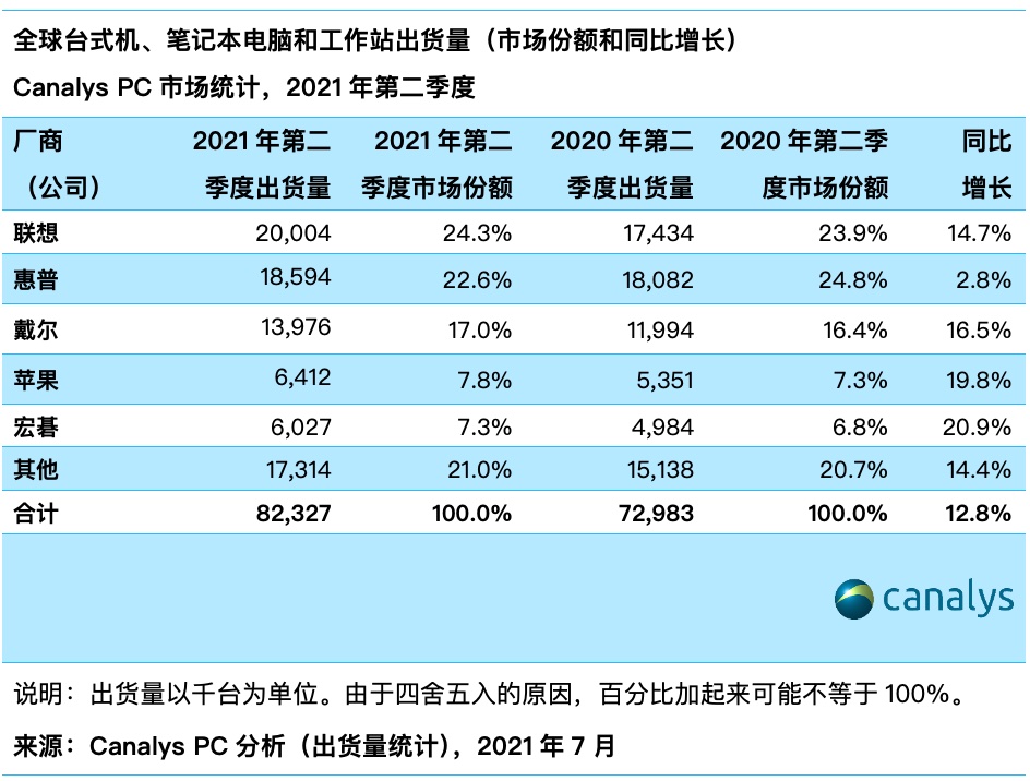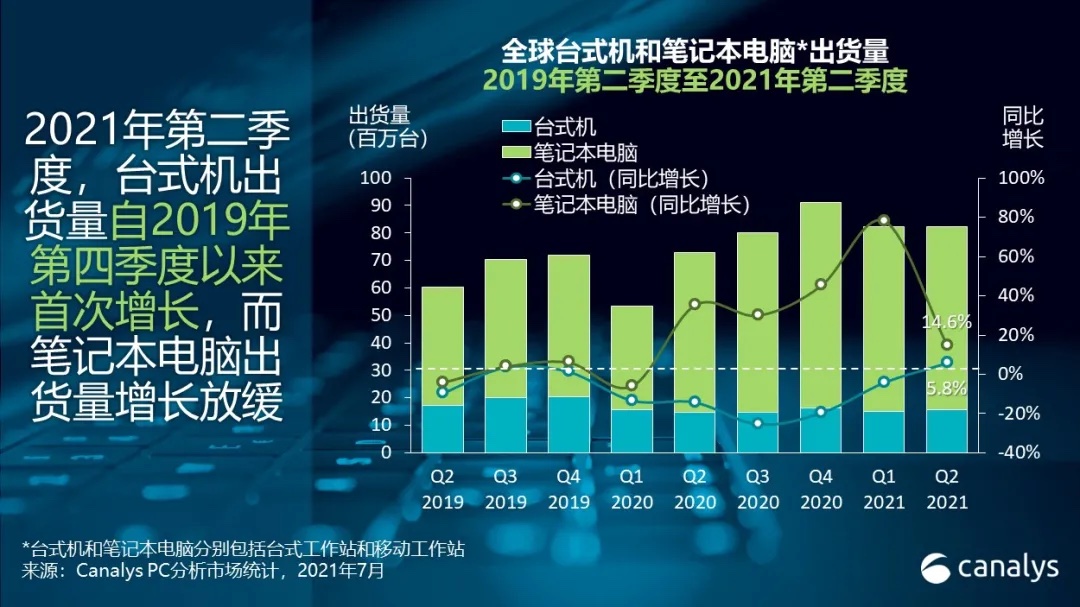 Canalys:鉴于商业需求旺盛,2021 Q2 全球 PC 市场增长 13%