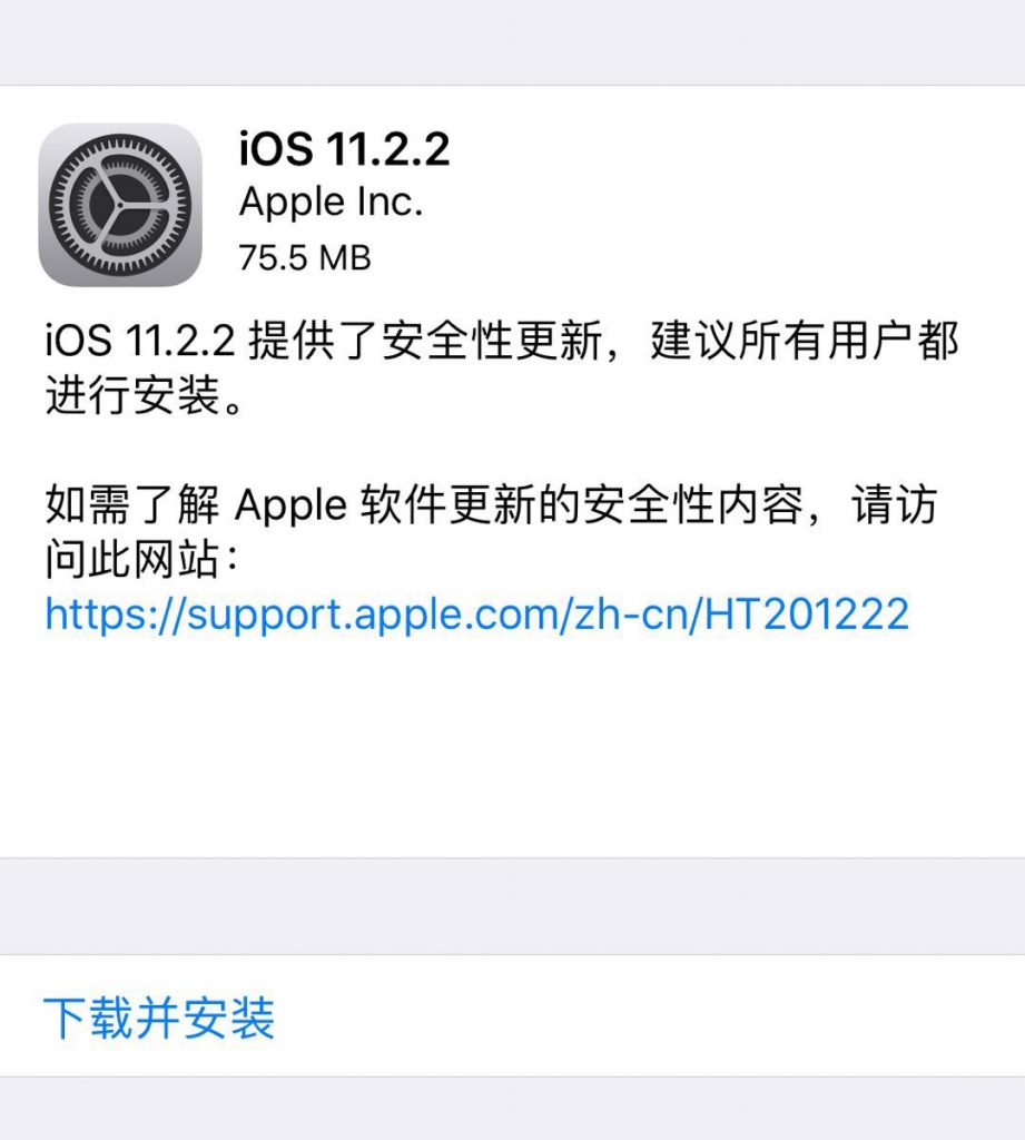 苹果在正式发布iOS 11.2.2 正式版和 macOS High Sierra 10.13.2